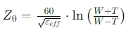 其中,W是線寬,T是導(dǎo)體厚度,